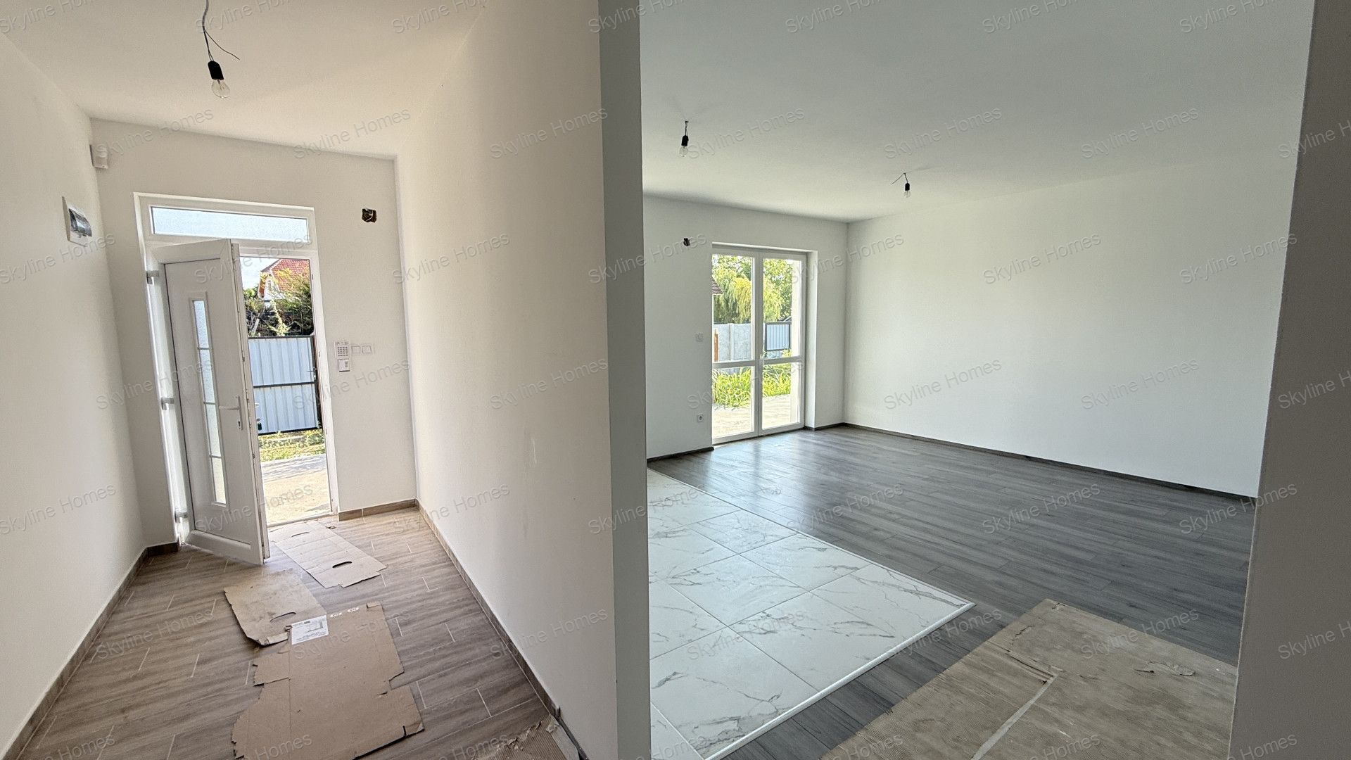Eladó Kiskunlacháza frekventált, mégis csendes részén egy 85 m² hasznos alapterületű, modern kialakítású sorházi középső lakás, saját 235 m²-es kerttel és 19 m²-es terasszal.